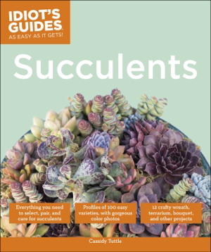 Succulents - Cassidy Tuttle - Succulents are plants that hold water in their leaves, such as cacti, aloe, and echeveria. They have captured the hearts of crafters, decorators, and plant lovers all over the world. Always popular as an outdoor plant in warm climates, succulents have found a new popularity as a try indoor plant that's easy to care for and fun to look at. Idiot's Guides: Succulents includes: + Everything needed to select, pair, pot, and care for succulent plants. + Snapshots of 100 of the most popular varieties of succulent plants, including care, color, hardiness, pairing, and a full-color photo for each. + 16 beautiful craft projects with how-to steps and color photos, including picture frames, wreaths, terrariums, centerpieces, and bouquets. + Tips on successfully propagating new succulents from existing plants. + Extensive advice on choosing pots and unique planters, repotting succulents, and pairing varieties for maximum impact. + An index of succulents by color and height that gives readers another tool for selecting the succulents that will look.